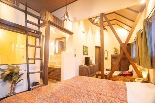 ダブルベッド 1台 無料WiFi