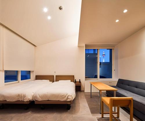 シングルベッド 2台 & ソファーベッド 1台 コーヒー/ティー 無料WiFi 飲料水