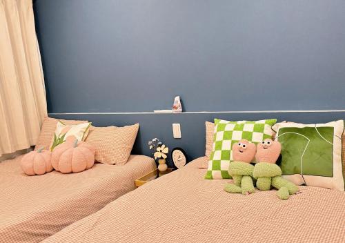 ダブルベッド 2台 & 布団 1組 無料WiFi